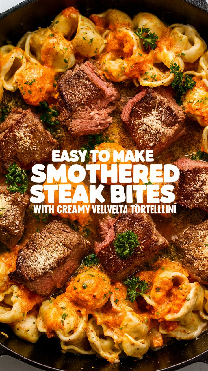 Smothered Steak Bites in Creamy Velveeta Tortellini