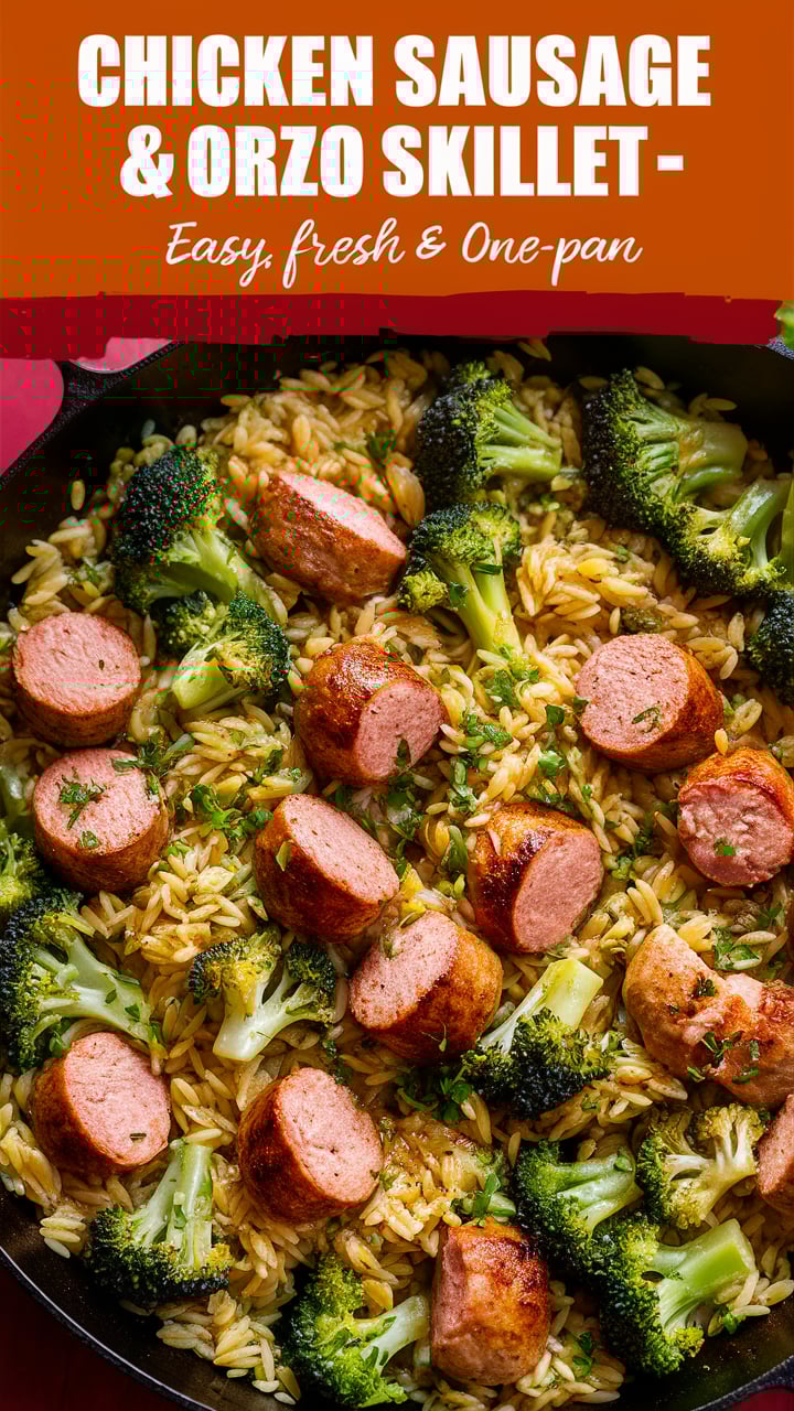 Looking for a quick, healthy, and family-friendly dinner that doesn’t leave a pile of dishes? This Chicken Sausage, Broccoli & Orzo Skillet is a one-pan wonder that’s ready in under 30 minutes. Packed with protein-rich chicken sausage, nutrient-dense broccoli, and tender orzo pasta, this dish delivers comfort food vibes without the guilt.