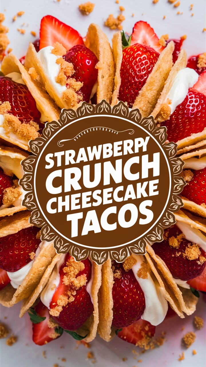 Discover how to make Strawberry Crunch Cheesecake Tacos – a viral dessert taco with creamy cheesecake filling, crispy taco shells, and nostalgic strawberry crunch topping. Easy, fun, and perfect for parties!