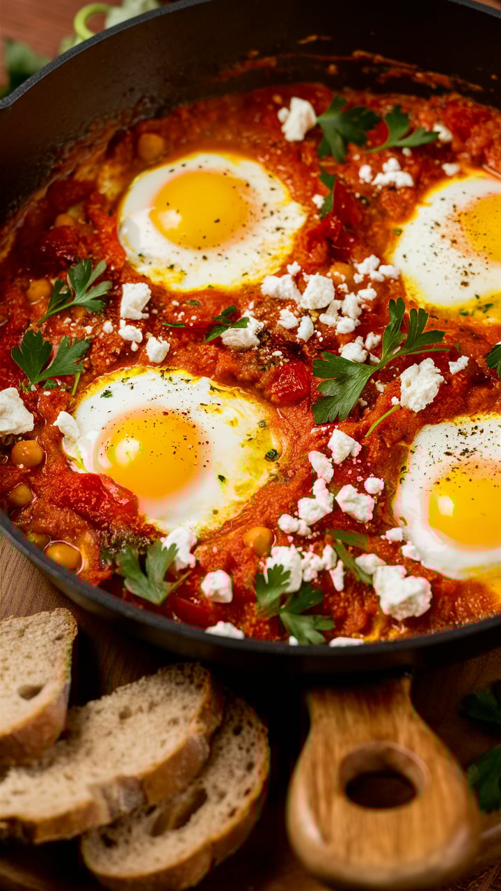 - Tunisian shakshuka: often spicier with harissa.